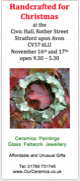 I will be exhibiting my ceramics alongside a wide variety of handcrafted Christmas gift ideas, including, jewellery, artwork, woodcraft and much, much more.