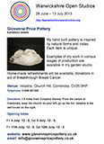 My garden studio will be open Wednesday to Sunday (inclusive) during this fortnight. Please click the image on the right to view my flyer including opening times. My work may be viewed and purchased, with examples shown at the different stages of development. Refreshments in aid of charity.
